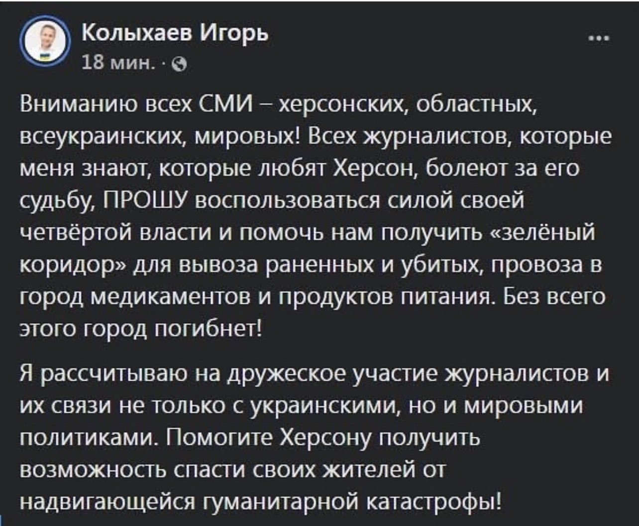 ! The mayor of #Kherson asks for a green corridor to bring out the wounded, the dead and deliver medicines and food to the city. thenewsandtimes.blogspot.com/2022/03/mayor-…